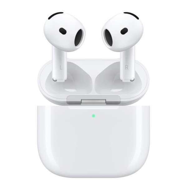 Discover the AirPods 4, now with the powerful H2 chip for enhanced audio and clearer calls. The redesigned earbuds offer a more secure fit and are IP54 dust, sweat, and water-resistant. Enjoy up to 5 hours of listening time on a single charge and up to 30 hours total with the new, smaller USB-C charging case.