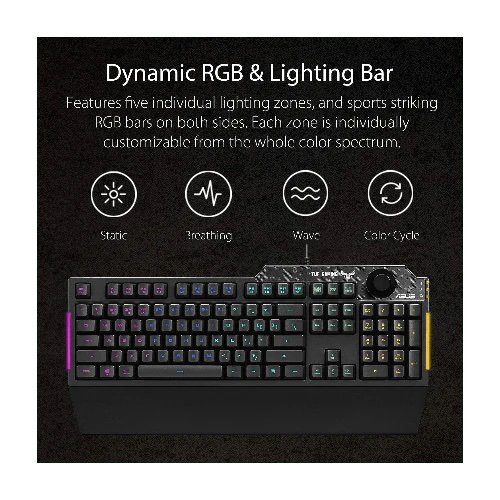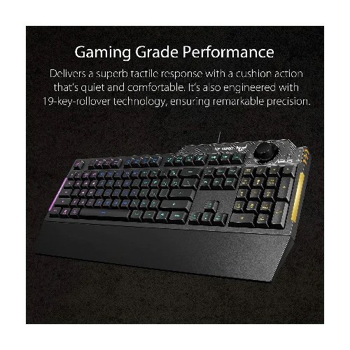 - Tactile TUF Gaming switches with 19-key rollover for responsive, reliable performance