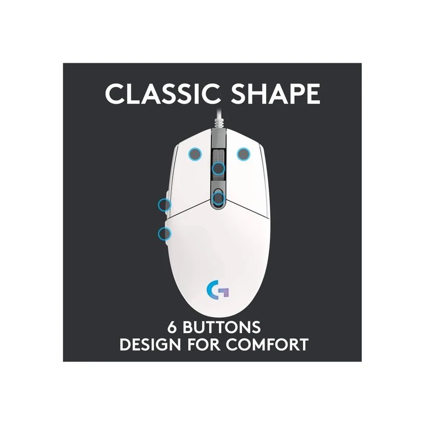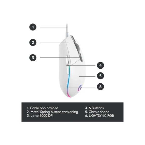 Logitech G203 LIGHTSYNC RGB 6 Button Gaming Mouse – White